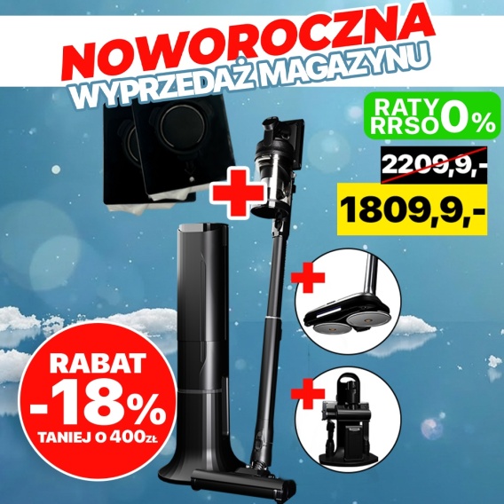 Pionowy odkurzacz bezprzewodowy z funkcją mopowania parą, szorowania, dezynfekcji. To jedyne urządzenie na rynku, które jednocześnie odkurza, myje parą i sterylizuje światłem UV, oferując kompleksowe czyszczenie w jednym, płynnym ruchu.