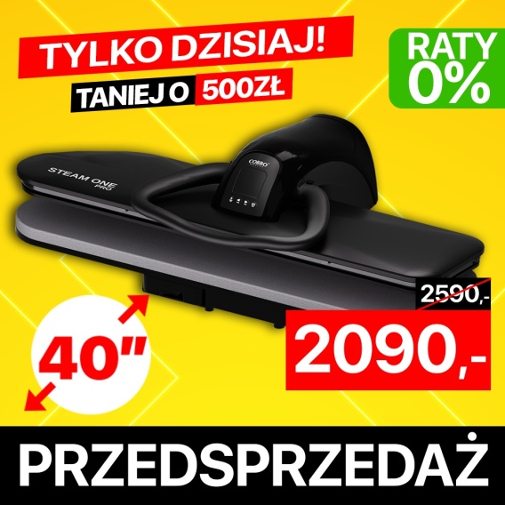 Prasowalnica parowa Steam One PRO 40'' to wydajna prasowalnica płytowa z mocną parą, która pozwala prasować znacznie szybciej i wygodniej niż klasycznym żelazkiem, dzięki dużej powierzchni roboczej i równomiernemu dociskowi. Skutecznie usuwa zagniecenia z spodni, delikatnych ubrań, a także pościeli, ręczników i zasłon, oferując precyzyjną regulację temperatury do różnych tkanin oraz tryb pracy na sucho i z parą. Szybko się nagrzewa, zapewnia profesjonalny efekt w domu i w zastosowaniach półprofesjonalnych, a systemy bezpieczeństwa, sygnały dźwiękowe i ochrona przed kamieniem zwiększają komfort użytkowania i trwałość urządzenia.