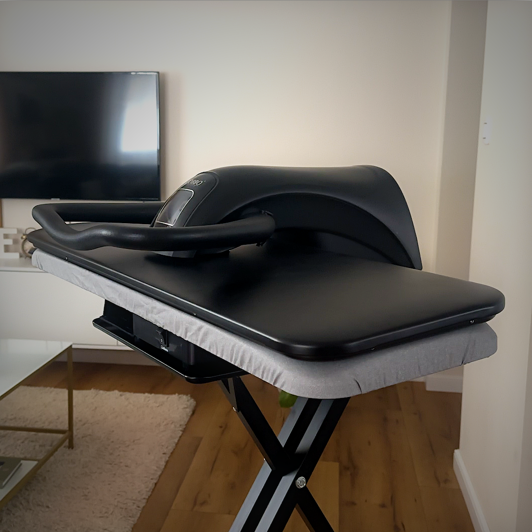 Stabilna konstrukcja i ergonomiczna wysokość pracy. Stwórz komfortowe, profesjonalne stanowisko prasowania dopasowane do Twojej przestrzeni.