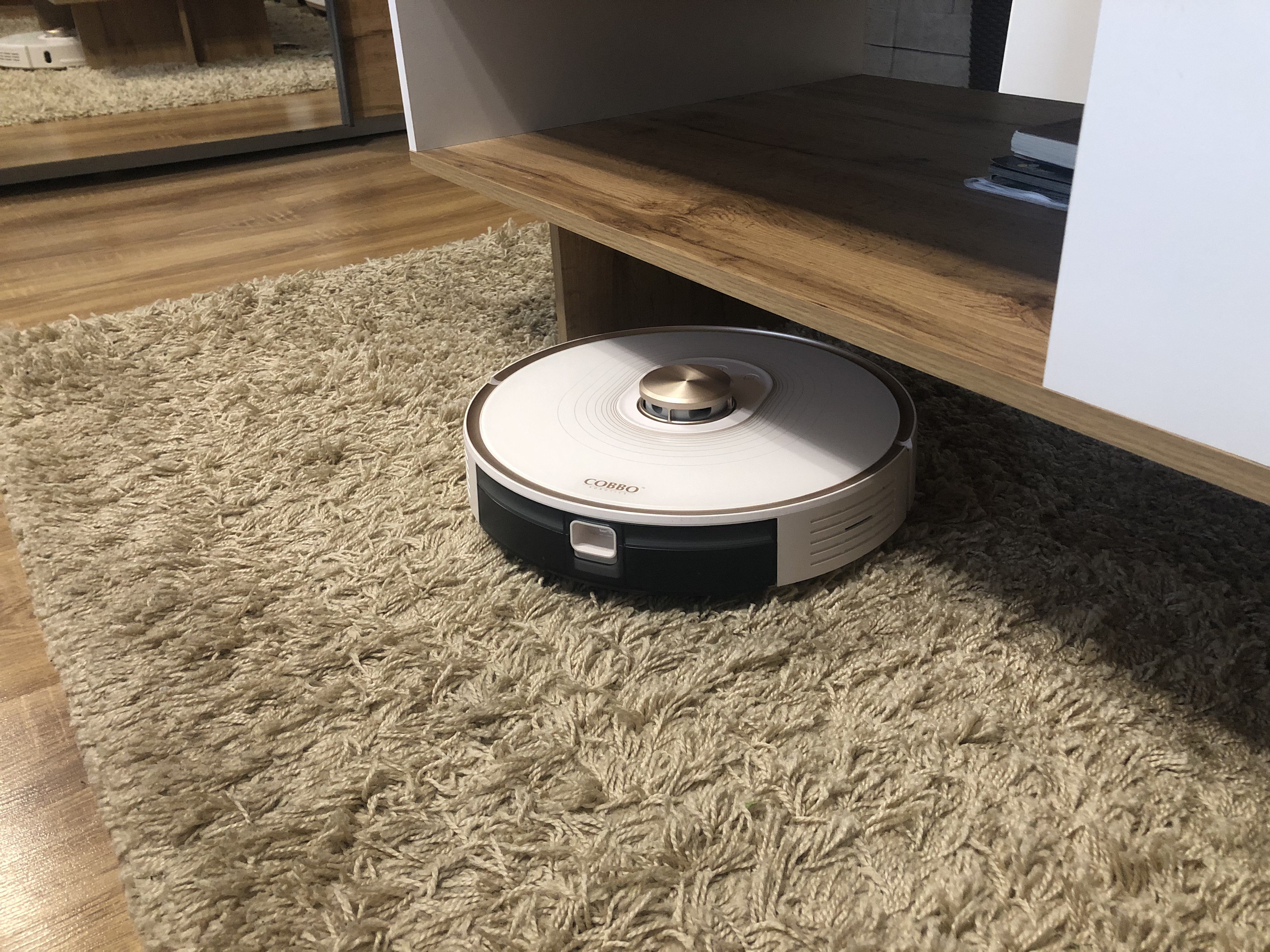 W samodzielnych robotach COBBO podnoszenie mopów działa nawet do 1,5 cm wysokości. To oznacza, że urządzenie nie przemoczy dywanu podczas mycia na mokro. Może bezpiecznie po nim przejechać bez przerywania pracy.